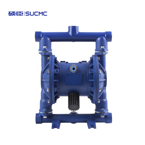 在隔膜泵的兩個對稱工作腔中,各裝有一塊有彈性的隔膜,聯桿將兩塊隔膜結成一體,壓縮空氣從泵的進氣接頭1進入配氣閥3后,推動兩個工作腔內的隔膜,驅使聯桿聯接的兩塊隔膜同步運動。與此同時,另一工作腔中的氣體則從隔膜的背后排出泵外。一旦到達行程終點。配氣機構則自動地將壓縮空氣引入另一個工作腔,推動隔膜朝相反方向運動,這樣就形成了兩個隔膜的同步往復運動。每個工作腔中設置有兩個單向球閥4,隔膜的往復運動,造成工作腔內容積的改變,迫使兩個單向球閥交替地開啟和關閉,從而將液體連續地吸入和排出。